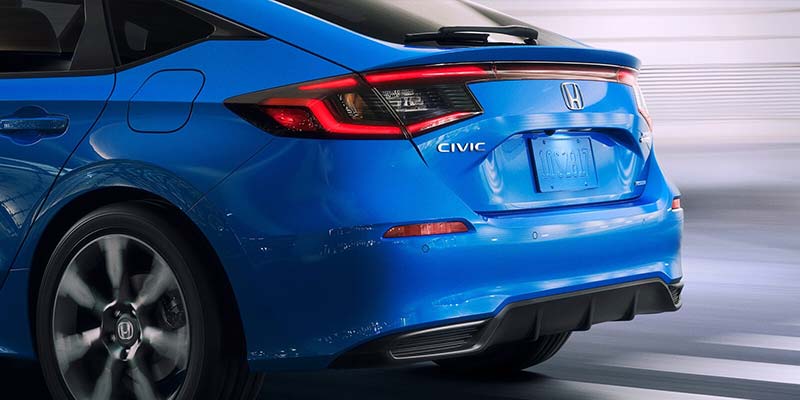 The 2025 Civic Hatchback comes in three trims: Sport, Sport Hybrid, and Sport Touring Hybrid. All models feature 18-inch alloy wheels. Heated gloss black power side mirrors are standard on the Sport and Sport Hybrid, adding style and convenience. The Sport Hybrid adds variable intermittent windshield wipers and a one-touch power moonroof for added luxury. The top-tier Sport Touring Hybrid includes rain-sensing windshield wipers and heated power side mirrors with integrated LED turn indicators.