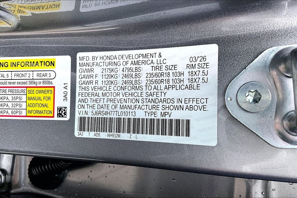 - Tires: 235/60R18 103H All-Season