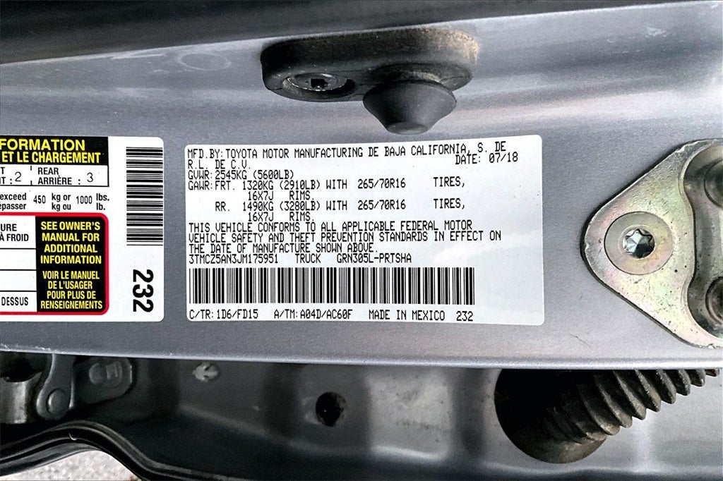 - Vehicle Name: Toyota Tacoma